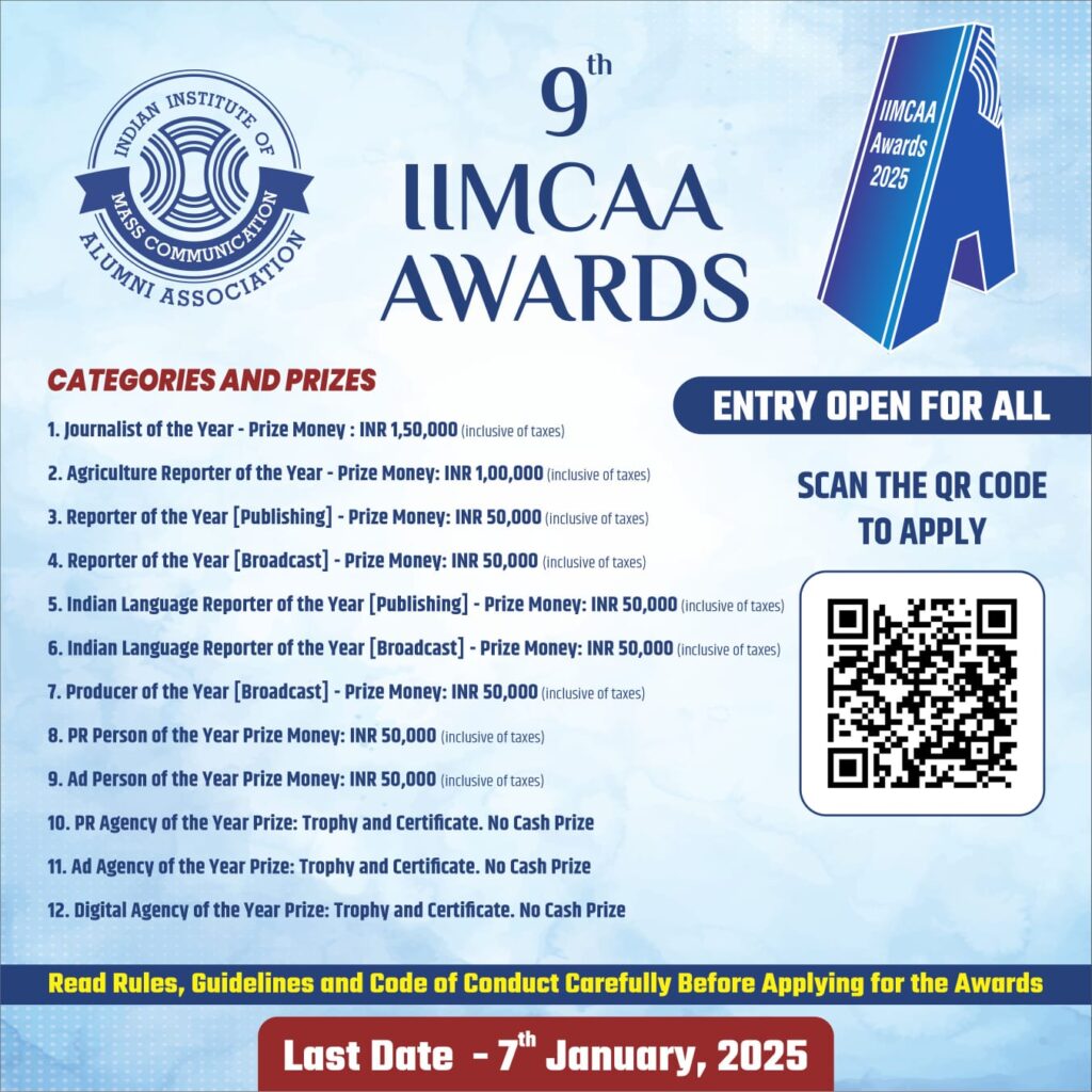 The IIMC Alumni Association (IIMCAA) is pleased to announce that the entries for the 9th IIMCAA Awards are now OPEN FOR SUBMISSION. It is open for all working professionals including non-IIMCians. Our commitment to recognize the outstanding achievements in various fields of mass communication and fostering connections among them remains steadfast. Hosting another round of these prestigious awards marks a significant milestone, and we are elated to have reached the IIMCAA Awards 2025.